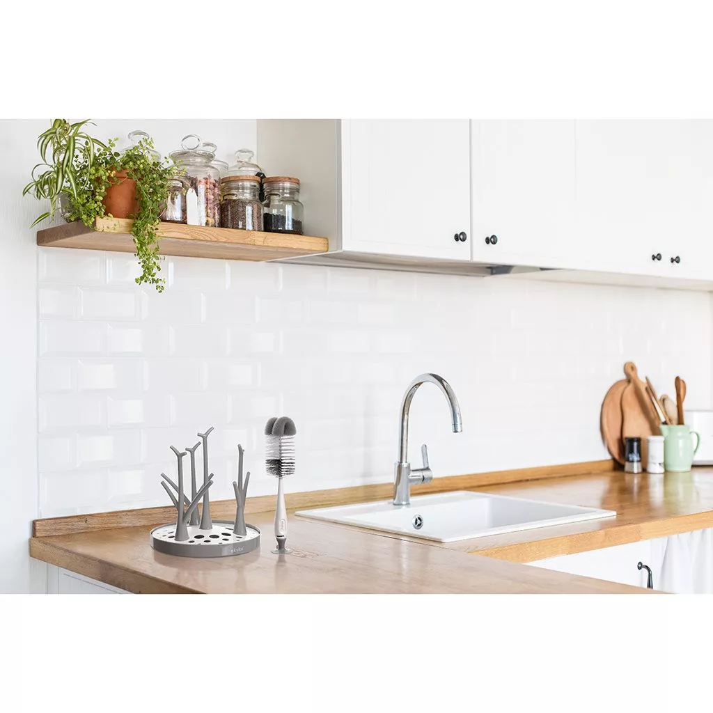 Két különleges kialakítású keféből (egy kicsi és egy nagy) álló szett az üvegek és cumik tisztán tartására. A nagyobb kefe végén található egy kisebb szivacs is, ami az üveg még alaposabb tisztítását teszi lehetővé. A nagy kefe nyelében van elrejtve a kis cumikefe. A szett minden darabja tapadó koronggal van befejezve, amellyel sima felületre lehet rögzíteni.
