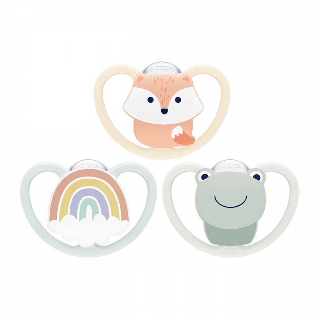Baba szilikon cumi NUK Space 1/doboz 0-6 hónapos babák számára. Aranyos állatkás motívummal díszítve. Nagyon minőségi műanyagból és szilikonból készült. Az áttetsző szilikon könnyen tisztítható és rendkívül hőálló. Nem tartalmaz káros anyagokat, forralható, szagtalan, áttetsző és sima felülettel rendelkezik. A csomagolás cumitároló dobozt is tartalamaz. Nem tartalmaz BPA-t. Minden NUK cumi rendszeresen tesztelve és ellenőrizve van a független intézetekkel.