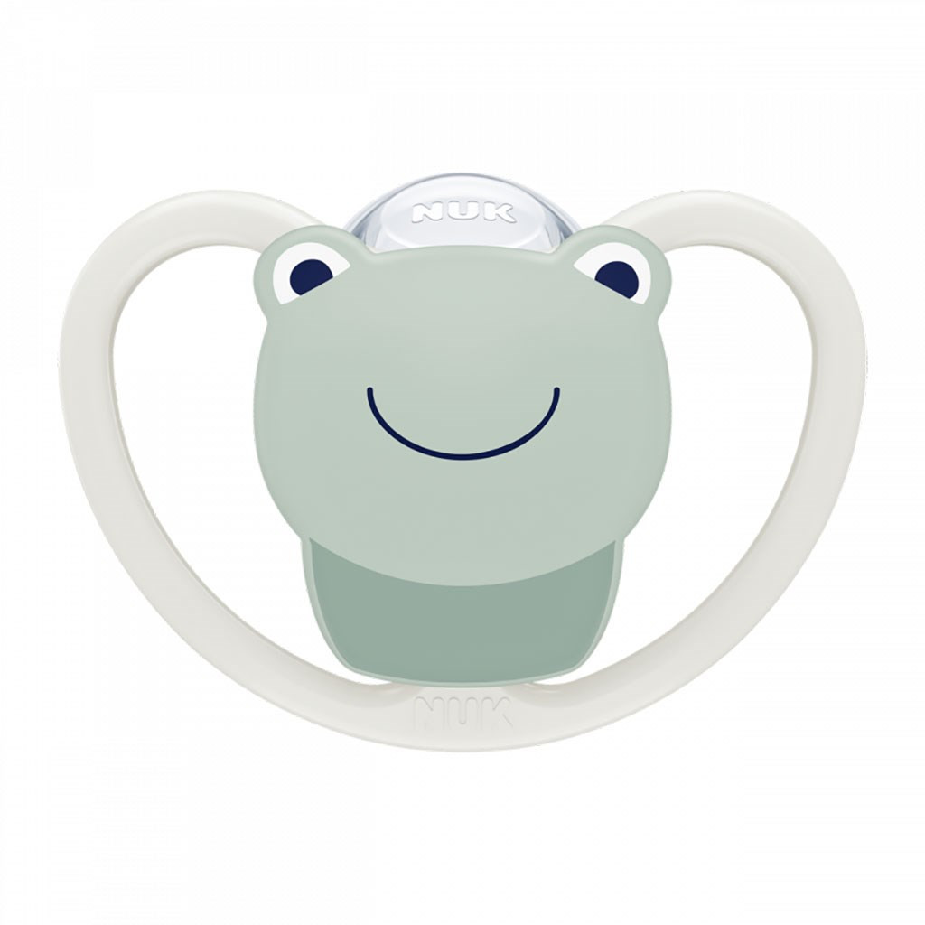 Baba szilikon cumi NUK Space 1/doboz 0-6 hónapos babák számára. Aranyos állatkás motívummal díszítve. Nagyon minőségi műanyagból és szilikonból készült. Az áttetsző szilikon könnyen tisztítható és rendkívül hőálló. Nem tartalmaz káros anyagokat, forralható, szagtalan, áttetsző és sima felülettel rendelkezik. A csomagolás cumitároló dobozt is tartalamaz. Nem tartalmaz BPA-t. Minden NUK cumi rendszeresen tesztelve és ellenőrizve van a független intézetekkel.