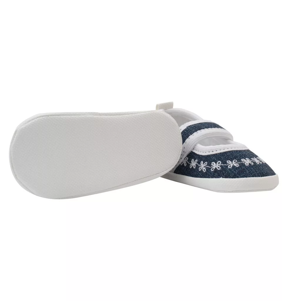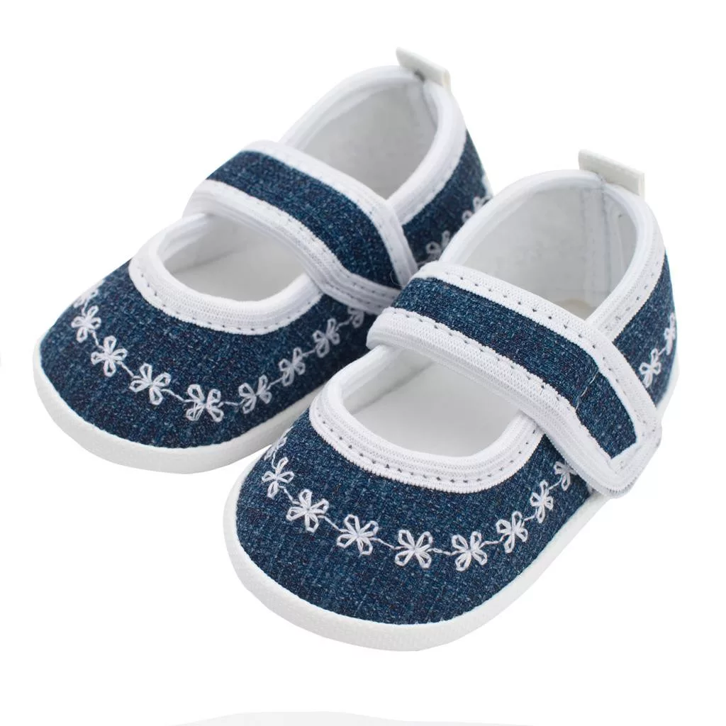 Baba aranyos és kényelmes cipő New Baby kislányok számára. Divatos tépőzáras puhatalpú cipő. A cipő kényelmes, könnyű és a láb természetes mozgásához igazodó. Rugalmas talppal rendelkezik, így leginkább hasonlít a mezítlábas járáshoz, viszont pont annyira vastag, hogy védje a baba talpacskáját a hideg padlótól. Anyaga: 80% pamut, 20% poliészter. Talp: szintetikus anyag. A talpbetét hossza 10 cm. 0-3 hónapos gyermekek számára készült. Praktikus ECO dobozban csomagolva. Megjegyzés: a textilbetét alatt van egy papírbetét, amely megtartja a kiscipő alakját. Az első használat előtt távolítsa el ezt a papírbetétet.