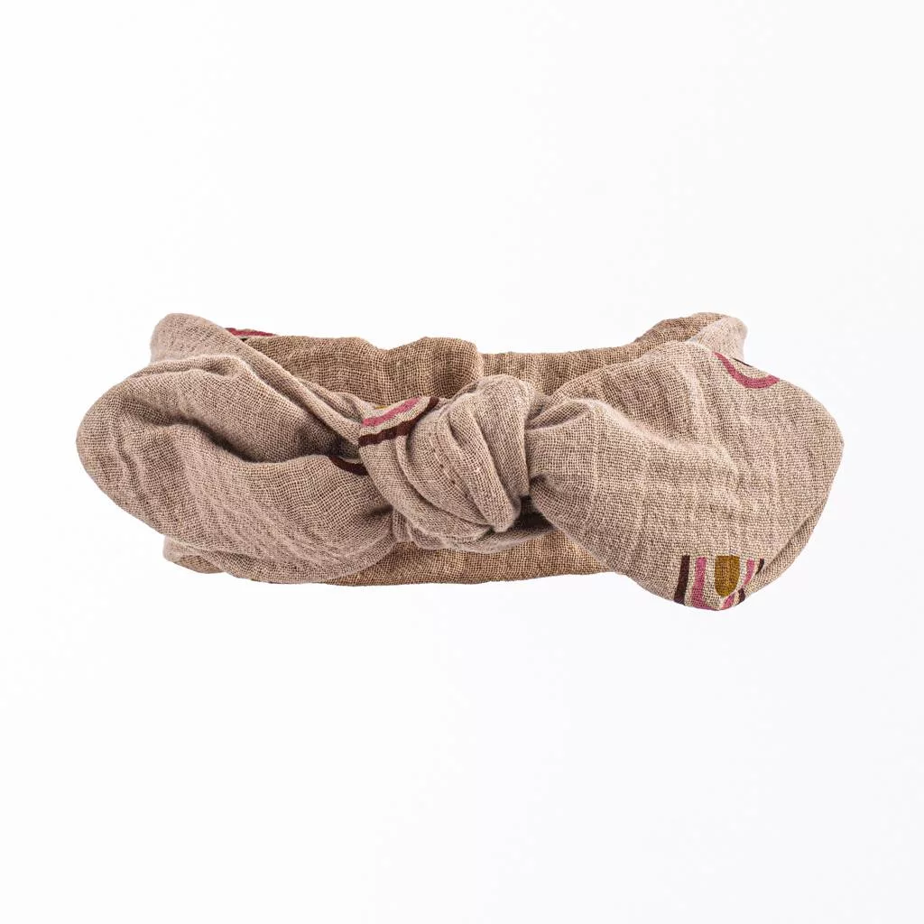 mintával díszített fejpánt. A fejpánt a megkötőnek köszönhetően könnyen méretre igazítható. Anyagösszetétel: 100% pamut. Szélesség: kb. 6 cm.