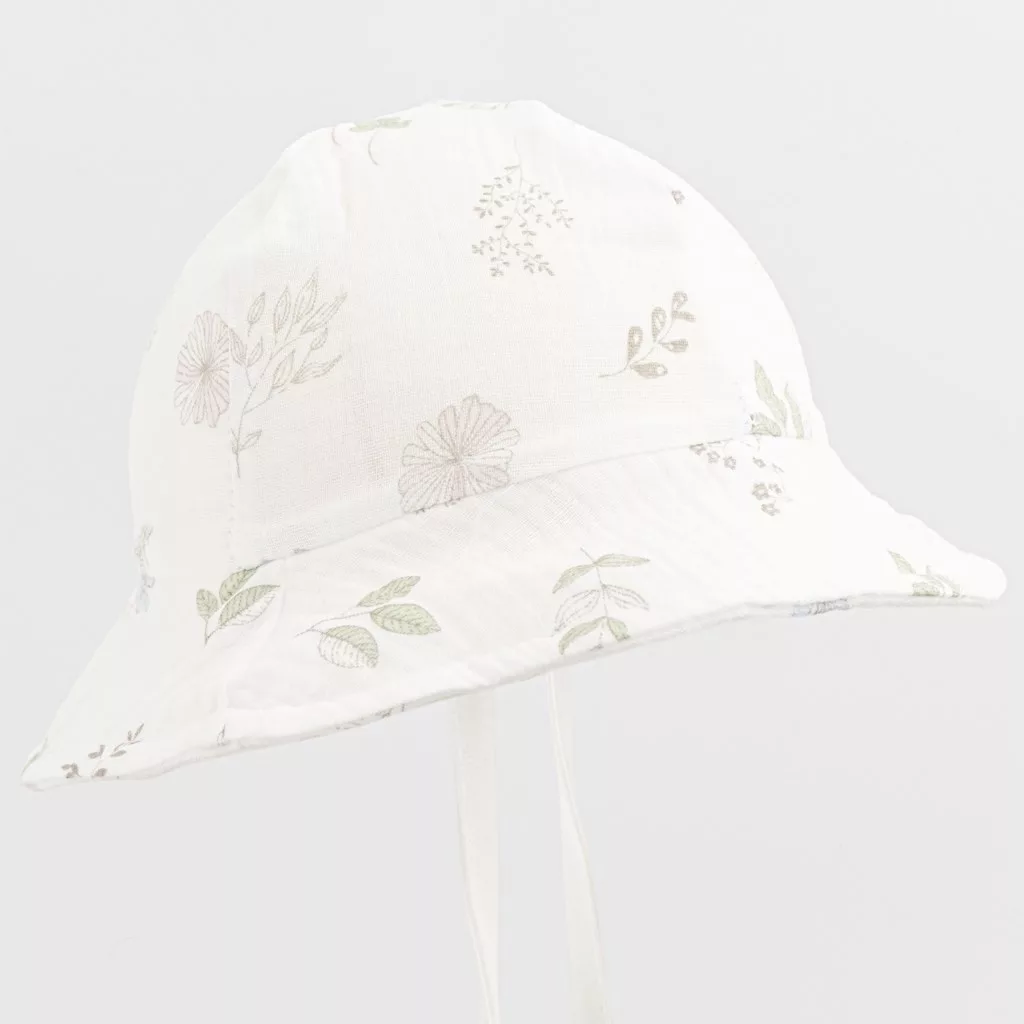 Gyönyörű és praktikus muszlin babakalap New Baby Zoe. A kalap csecsemőknek és kisgyermekeknek készült, akiknek védelemre van szükségük a napfénytől. A kalap megkötős. A bekötés kényelmes, így nem kell aggódni, hogy a sapka lecsúszik vagy leesik. A baba aranyosan fog kinézni, miközben védve lesz a napsugárzástól. A muszlin finomszövésű pamut anyag. A muszlin általában szoros szövésű fehérítetlen vagy fehér anyag, amelyet pamut gyöngyfonálból készítenek. Gyakran használják ruhák vagy függönyök készítésére. A muszlin jól levegőzik, ezért jó ruhaalapanyag a száraz, meleg éghajlatú területeken. Anyaga: 100% pamut.