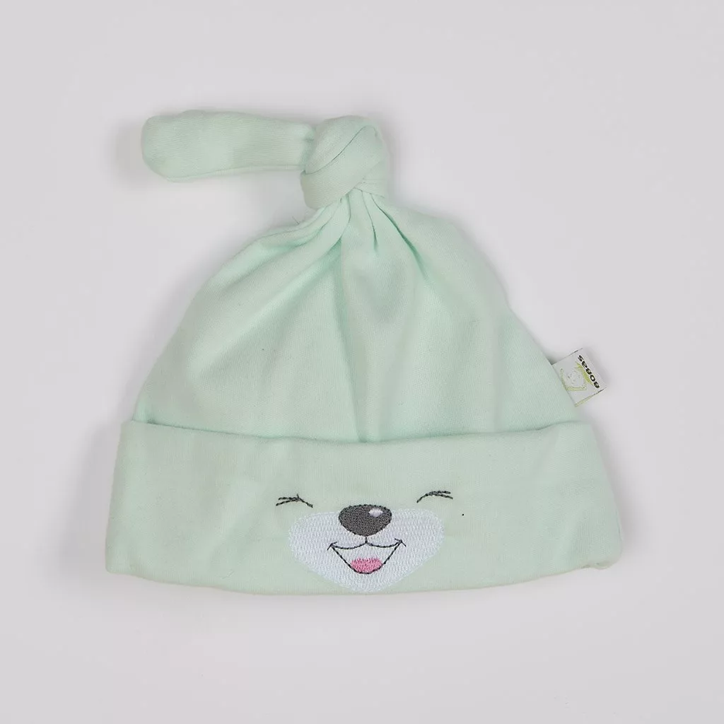 Baba pamut sapka Bobas Fashion Lucky. A sapka mosolygós állatka arccal díszitve. Széles szegéllyel rendelkezik. A sapka minőségi pamutból készült, ami kellemes, puha és ezért nagyon alkalmas a csecsemőknek. Anyaga: 100% pamut.