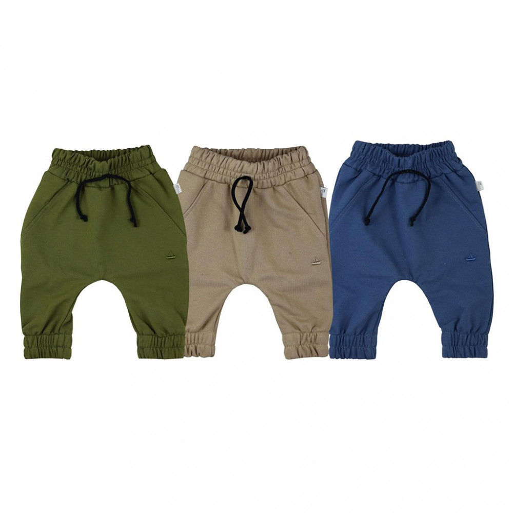 Baba szabadidő nadrág Koala Hajó kisbabák számára. A szabadidő ejtett üleppel és széles rugalmas derékpánttal rendelkezik. Nagyon kellemes, puha és kiváló minőségű anyagból készült. Anyaga: 96% pamut, 4% elasztán.
