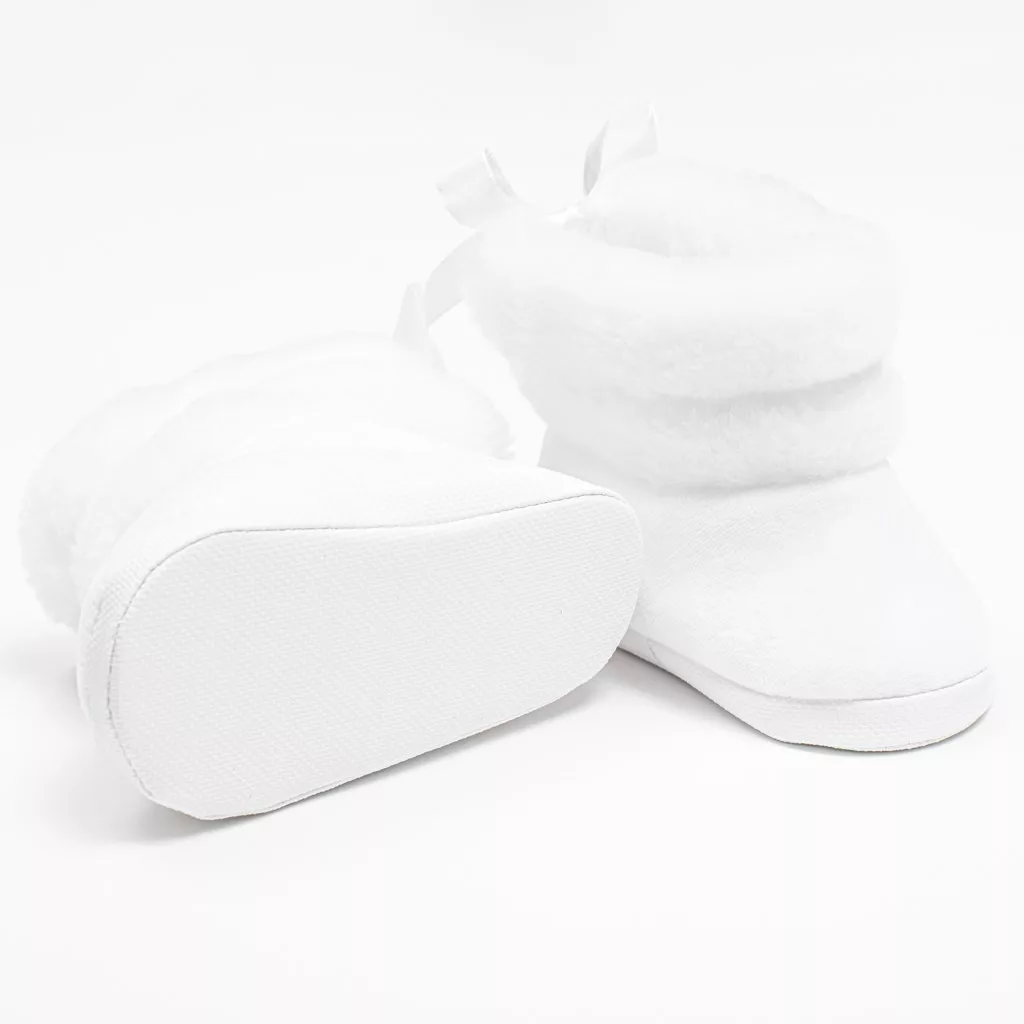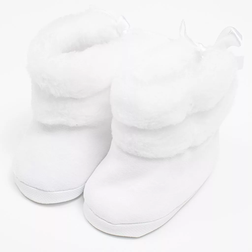 Baba aranyos és kényelmes téli cipő New Baby kisbabák számára. Divatos gyönyörű, meleg velúr megkötős cipő, csizma stílusában. Belső része welur 100% poliészter béléssel rendelkezik. A cipő kényelmes, könnyű és a láb természetes mozgásához igazodó. Rugalmas talppal rendelkeznek, így leginkább hasonlítanak a mezítlábas járáshoz, viszont pont annyira vastagok, hogy védjék a baba talpacskáját a hideg padlótól. Összetétel: 80% pamut, 20% poliészter, gyapjú wellsoft-100% poliészter. Talp: szintetikus anyag-BPA free. A talpbetét hossza 10 cm. 0-3 hónapos gyermekek számára készült. Praktikus dobozban csomagolva. Megjegyzés: a textilbetét alatt néha van egy papírbetét, amely megtartja a kiscipő alakját. Az első használat előtt távolítsa el ezt a papírbetétet.