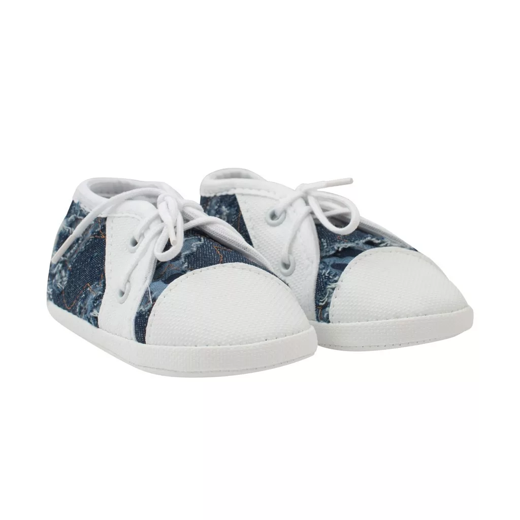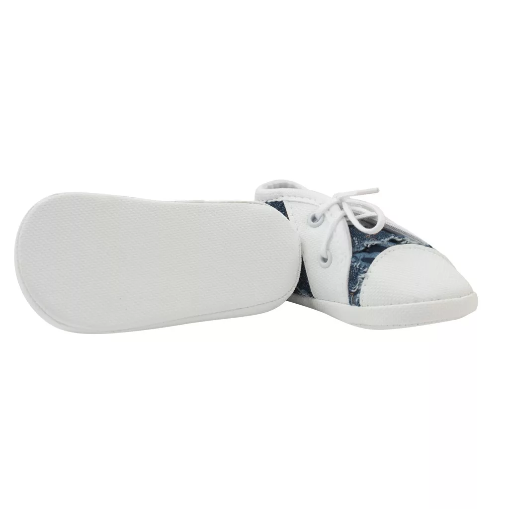 Baba aranyos és kényelmes cipő New Baby kisbabák számára. Divatos megkötős puhatalpú tornacipő. A cipő kényelmes, könnyű és a láb természetes mozgásához igazodó. Rugalmas talppal rendelkeznek, így leginkább hasonlítanak a mezítlábas járáshoz, viszont pont annyira vastagok, hogy védjék a baba talpacskáját a hideg padlótól. Anyaga: 80% pamut, 20% poliészter. Talp: szintetikus anyag. A talpbetét hossza 10 cm. 0-3 hónapos gyermekek számára készült. Alkalmas fiúknak és lányoknak. Praktikus ECO dobozban csomagolva. Megjegyzés: a textilbetét alatt van egy papírbetét, amely megtartja a kiscipő alakját. Az első használat előtt távolítsa el ezt a papírbetétet.