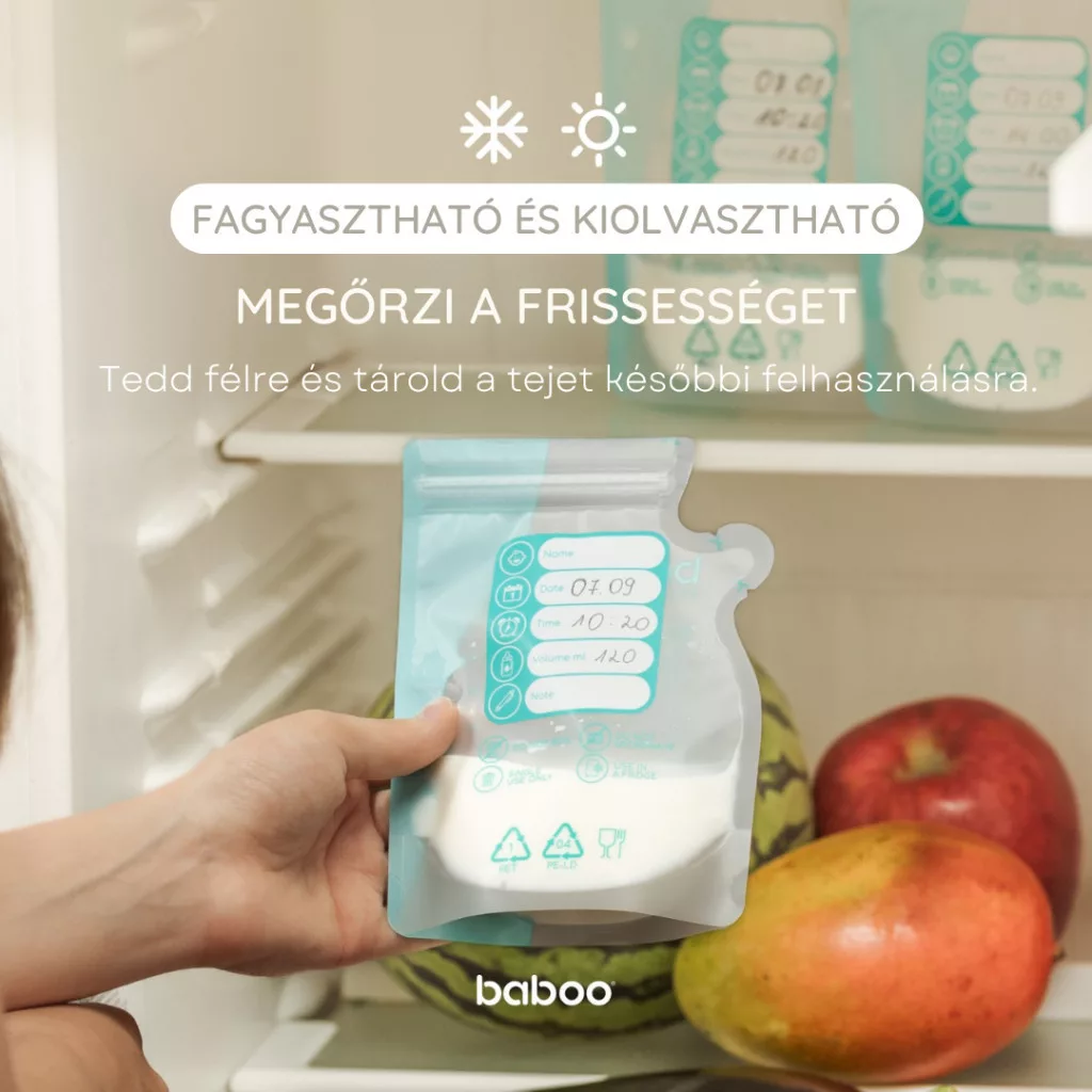 Baboo® Anyatejtároló zacskók – higiénikus, biztonságos és fagyasztható megoldás az anyatej tárolására