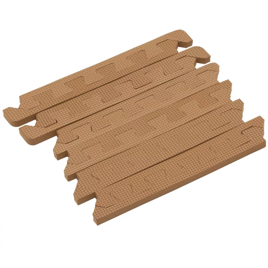 16 darabos barna szegély készlet BabyDan vagy Rialto Baby parafa vagy barna játszószőnyegekhez. A 16 darabos szett 120x120 cm-es mérethez illik, amelyet a szélekkel együtt 122x122 cm-re lehet növelni.