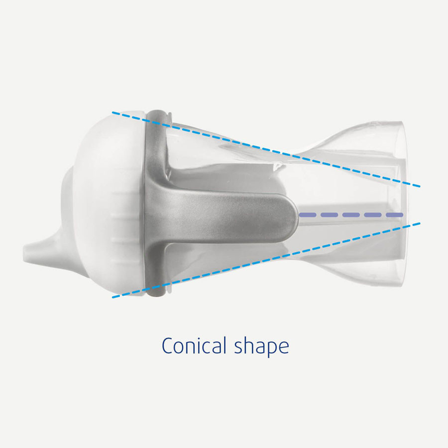 - Egyedi forma, más belül és kívül, lehetővé teszi a kicsi fejének optimális pozíciójának biztosítását ivás közben