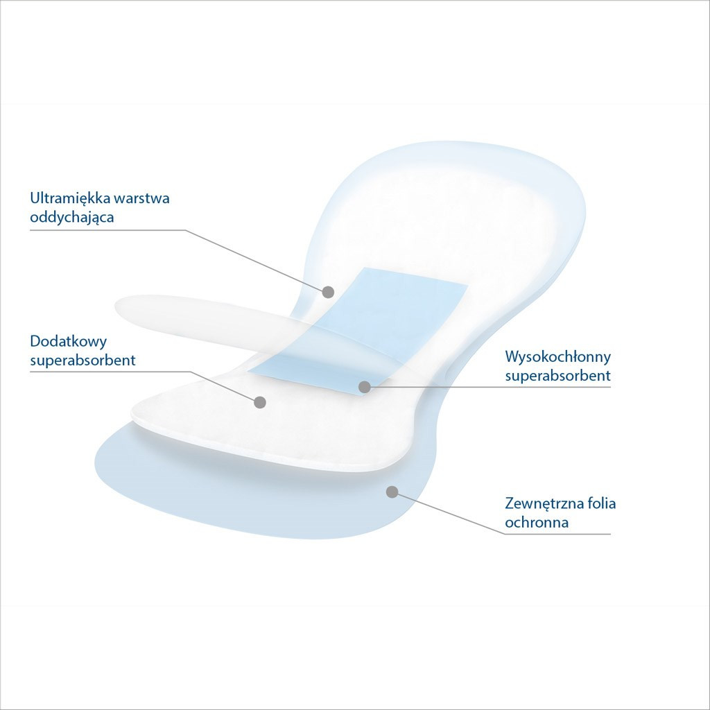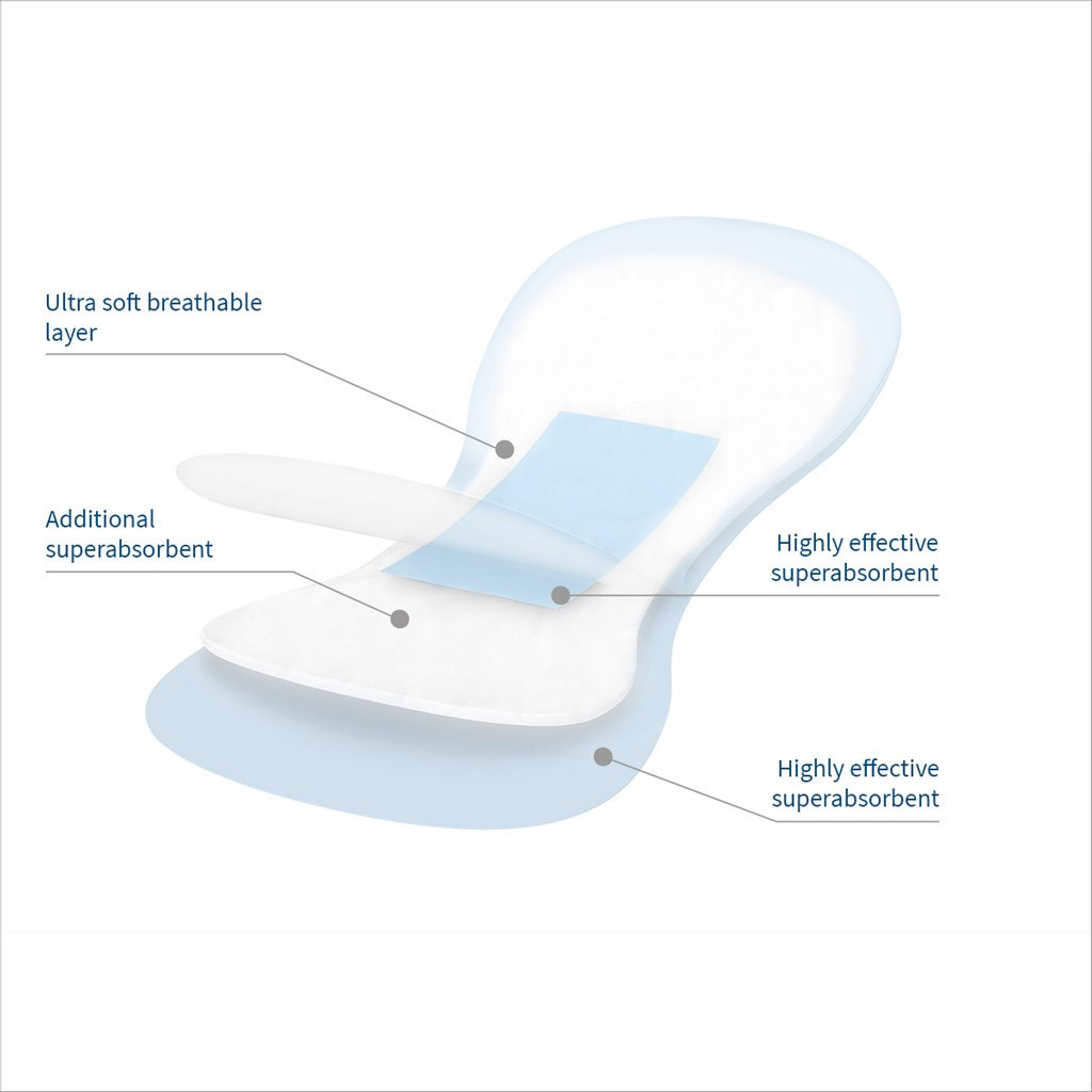 Anatómiailag sima, selymes és lélegző. A szülés utáni betét anatómiai alakja növeli a kényelmes viselést, diszkréciót és hatékony védelmet nyújt fekvő helyzetben is; a speciálisan hullámosított felület egyenletesen elosztja a folyadékot, megakadályozva, hogy a betét ragadjon és a bőr ne irritálódjon. Ezenkívül a ragasztószalagok lehetővé teszik a betét rögzítését a fehérneműhöz. A szuperabszorbens anyagot tartalmazó két réteg dupla zárat biztosít a nedvességnek, biztonságosan tartja a betét belsejében, és semlegesíti a kellemetlen szagokat. A termék a szülés utáni nők számára készült. Eldobható, egyszer használatos termék.