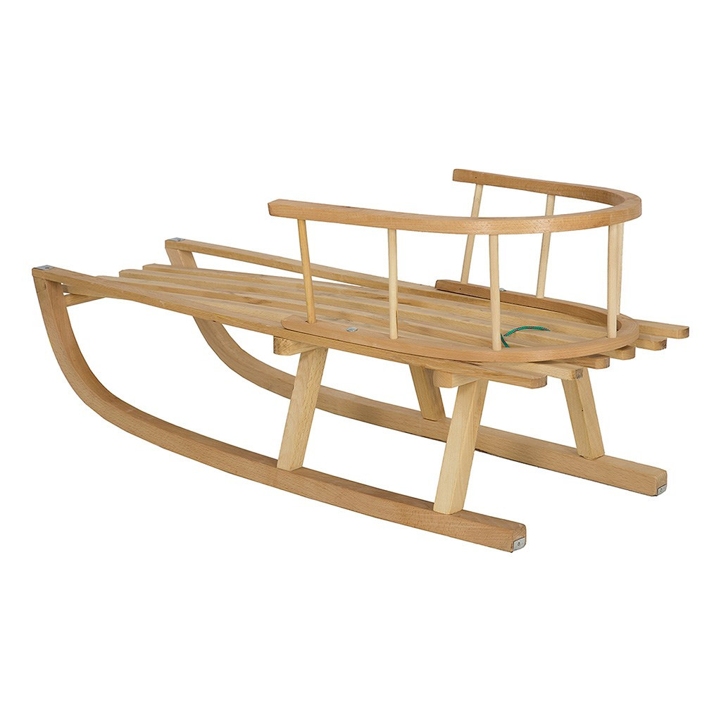 Kiváló minőségű bükkfából (sérülésálló keményfából) készült gyerek szánkó háttámlával és húzózsinórral.