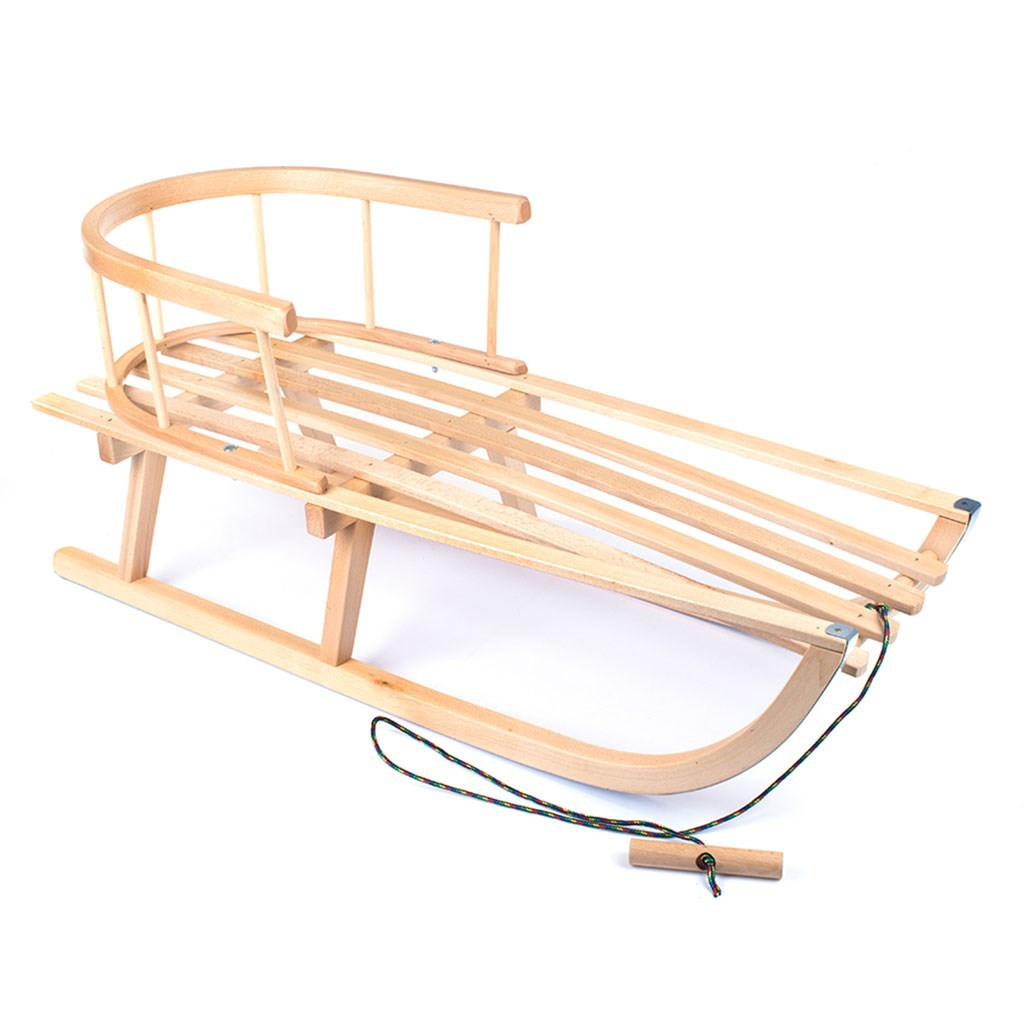 A készlet tartalma: szánkó, háttámla, fa fogantyús húzózsinór. A fa természetes színű, környezetbarát lakkal van kezelve, amelynek köszönhetően megőrzi természetes színét és szerkezetét.