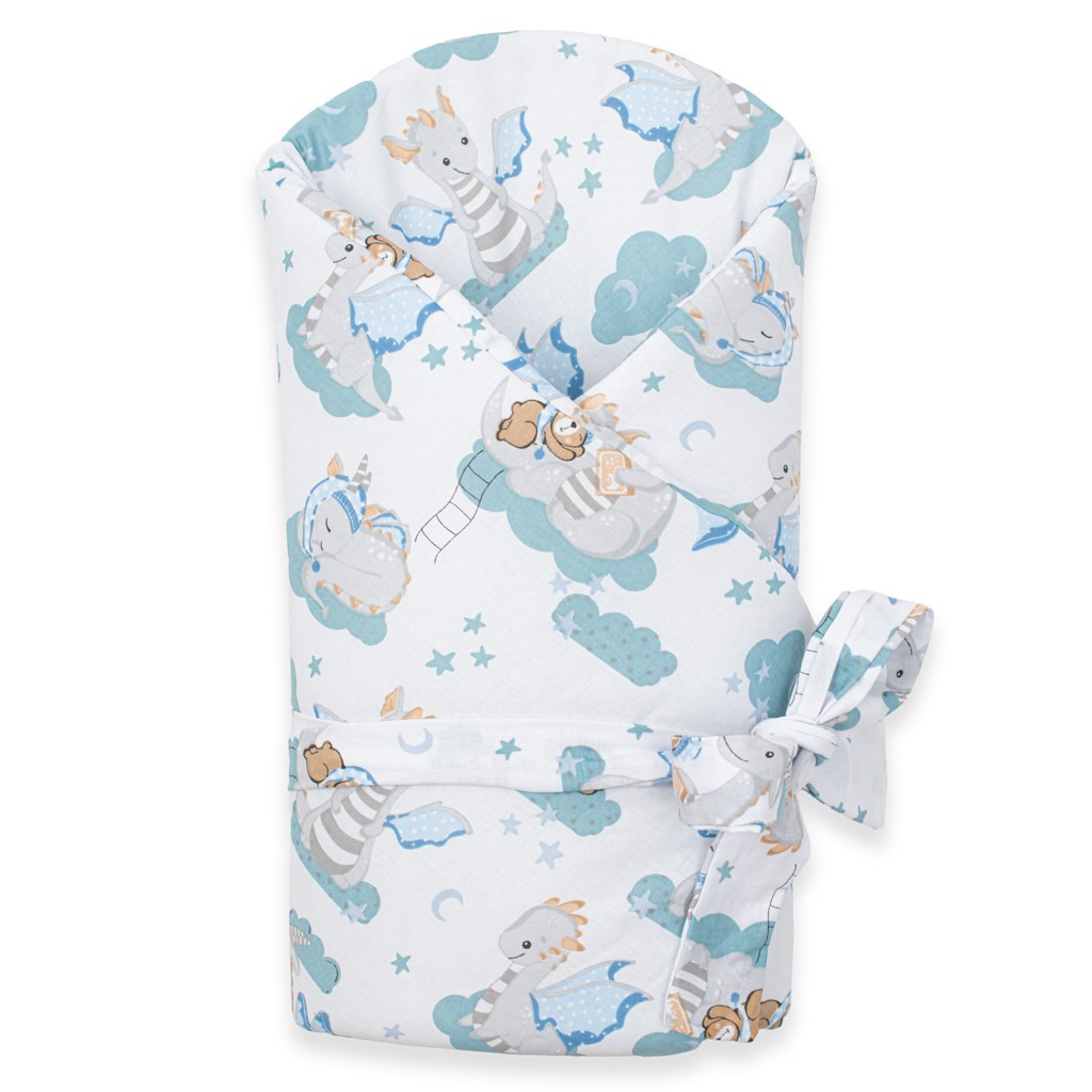 Aranyos baba pólyakendő New Baby Sárkány. Gyönyörű gyermekmotívum aranyos kis, gyönyörködtetni fogja a gyermekszemeket. Puha minőségi anyagból készült, ami kellemes melegséget biztosít a baba számára. A pólyakendő tépőzáras. Mérete cca 80x80 cm. Összetétel: huzat 100% pamut, töltőanyag 100% poliészter.