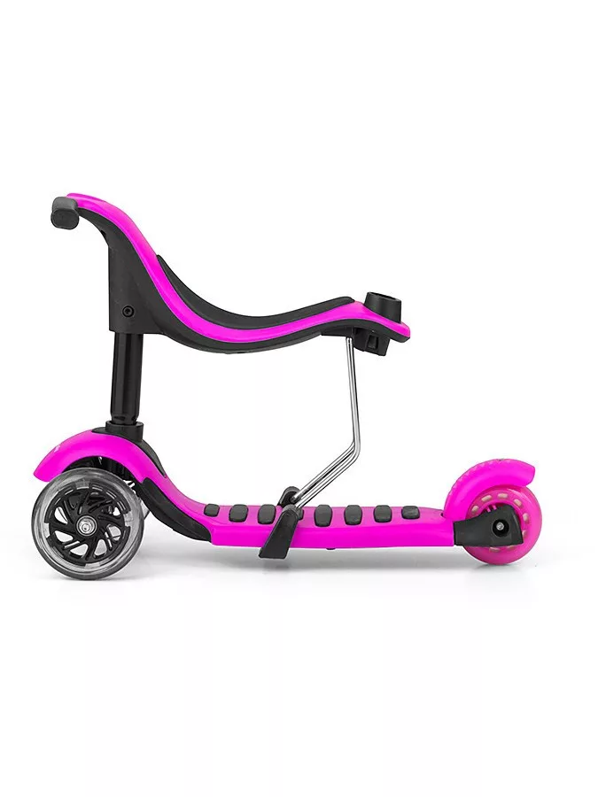 Gyerek roller Milly Mally Little Star. Egy vezető rudat tartalmaz a szülők számára. A vezető rúd levehető. 2 éves kortól ajánlott. Teherbírás 20 kg. Acélkonstrukció. Fék a hátsó kerekén. Puha borítás a kormányon. Sárvédő a hátsó kerekén. Hátsó kerék átmérője 10 cm, első kerekek 12 cm. Méretek: magassága 79-100 cm, szélessége 27 cm, hossza 57 cm.