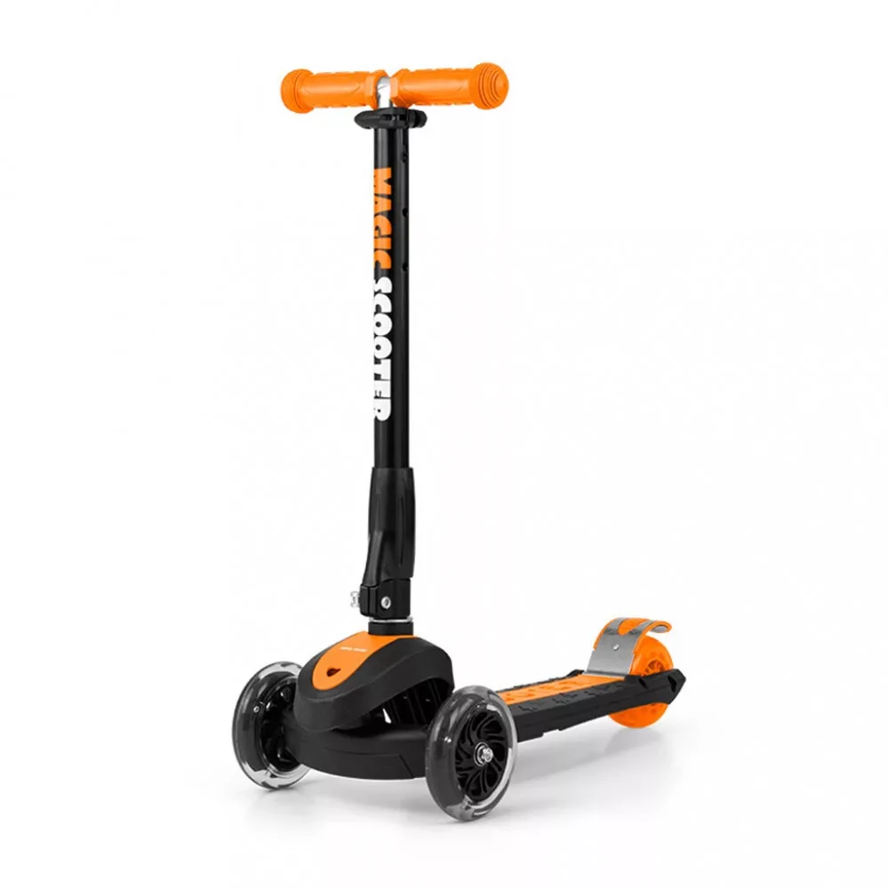 Super Stílusos gyerek roller Milly Mally Magic Scooter. A Magic Scooter minőségi anyagokból készült, ideális sétákhoz és nagyszerű szórakozást nyújt a gyerekek számára. A fémszerkezet garantálja a termék tartósságát. A kormánya nem forgatható, hanem jobbra - balra dönthető és így kormányozható. A roller nagy előnye a 3 kerék, amely stabilitást és biztonságot nyújt. Az első kerekek vezetés közben világítanak. Pompás dizájnja van.