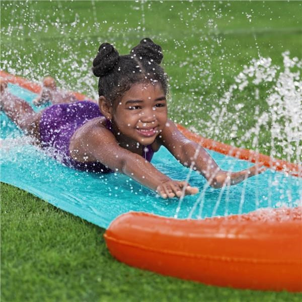 A StompBlast egyes csúszda tökéletes választás a nyári szórakozáshoz a kertben. 3 éves kortól ajánlott, ez az egypályás csúszda olyan permetezőkkel van felszerelve, amelyek aktiválódnak, amikor a gyerekek rálépnek a StompBlast™ padra, így vízzel locsolhatják barátaikat a célba vezető verseny közben. A SplashBoost szórófejek a csúszda teljes hosszában elhelyezkednek, hogy biztosítsák az optimális csúszást, fröccsenést és mókát.