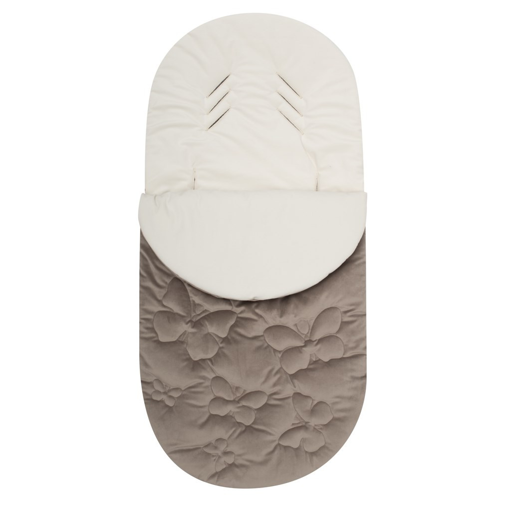 Téli bundazsák New Baby Butterfly, babakocsiba és gyerekülésbe. 5 pontos biztonsági öv átvezetésére szolgáló nyílásokkal, amelyeknek köszönhetően utazás közben is tökéletes védelmet