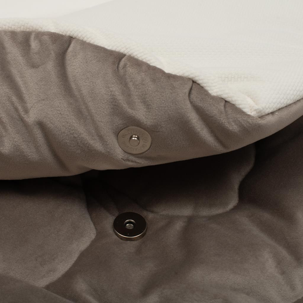 nyújt. A cipzárnak köszönhetően a baba kényelmesen belehelyezhető a bundazsákba. A cipzár a bundazsák alsó részén is teljes egészében szétnyitható, így az szőnyegként is használható. A bundazsák belseje csodálatosan puha és kellemes velvet anyag, amely nem hajlamos a csomósodásra vagy keményedésre. A külső oldal kellemes tapintású velúr anyag, pillangókkal.