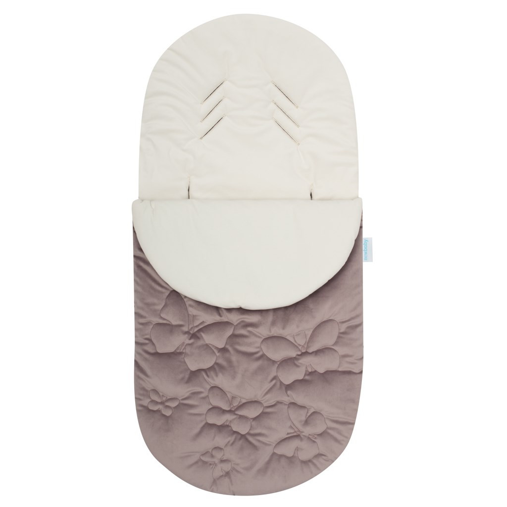 Téli bundazsák New Baby Butterfly, babakocsiba és gyerekülésbe. 5 pontos biztonsági öv átvezetésére szolgáló nyílásokkal, amelyeknek köszönhetően utazás közben is tökéletes védelmet