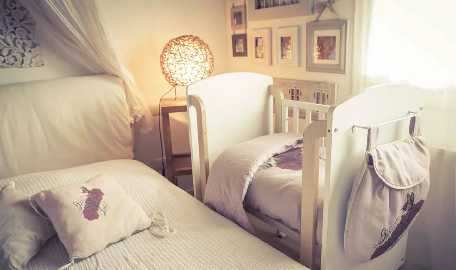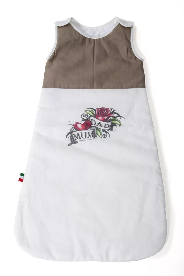 Ökopamutból és puha lenvászonból készült hálózsák, hossza 85 cm. Gyönyörű Mom and Dad dekoráció.