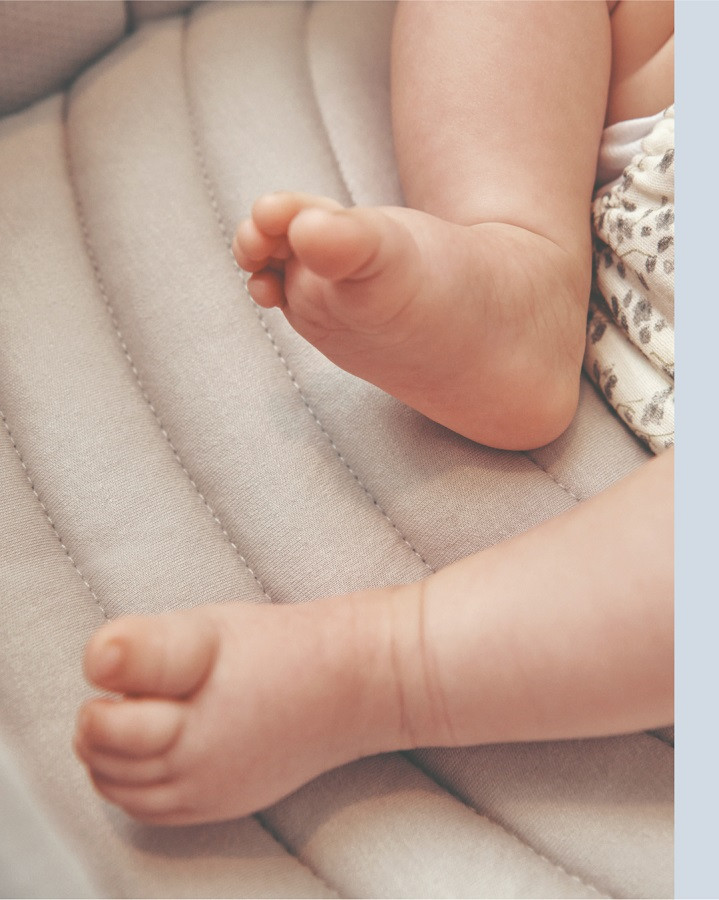 Az állítható anatómiai henger finoman kíséri a gyermek lábainak természetes hajlítását és támogatja a mozgásszervi ellazulást.