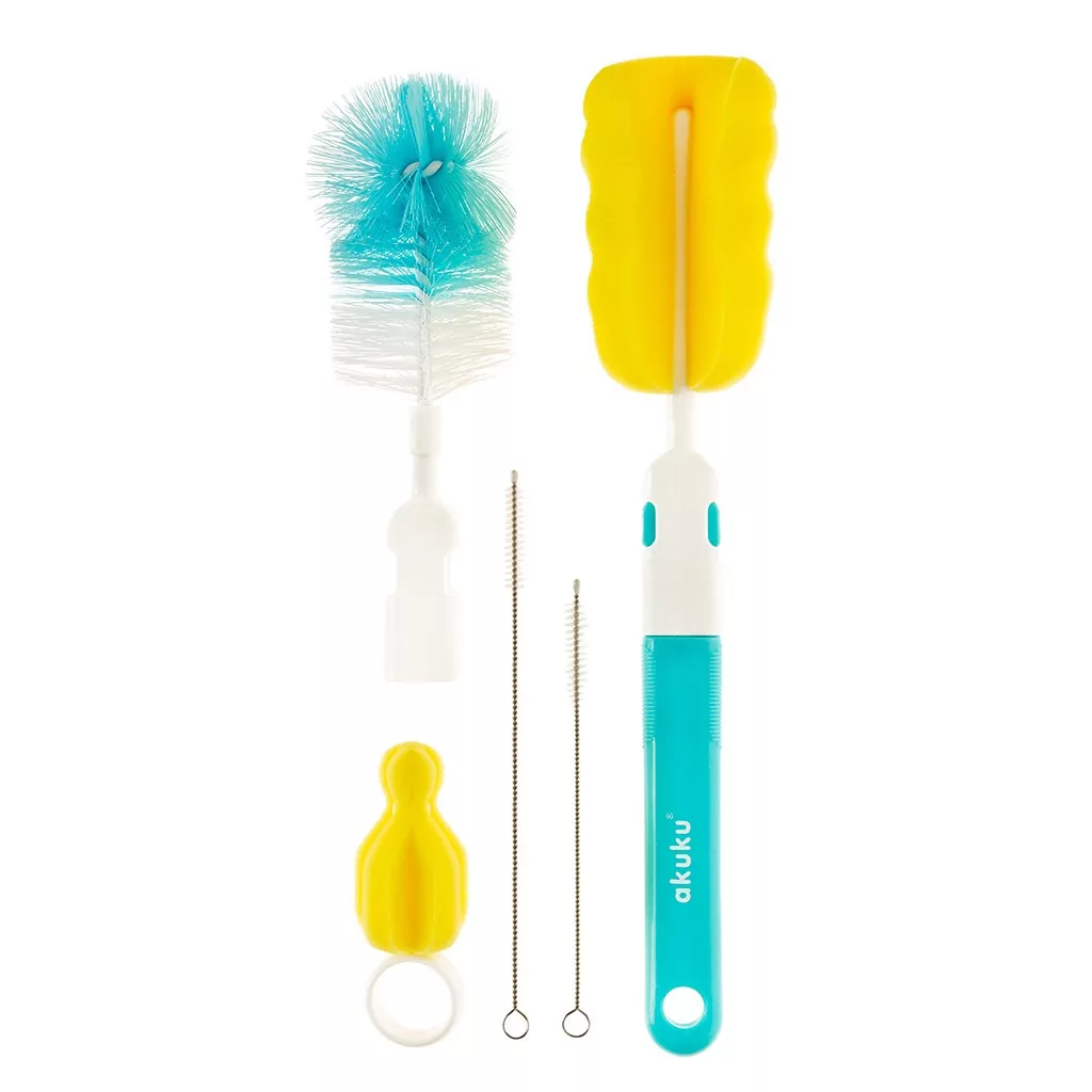 Kefe szett a cumisüveg, cumi és a szívószál tisztításához Akuku kék
