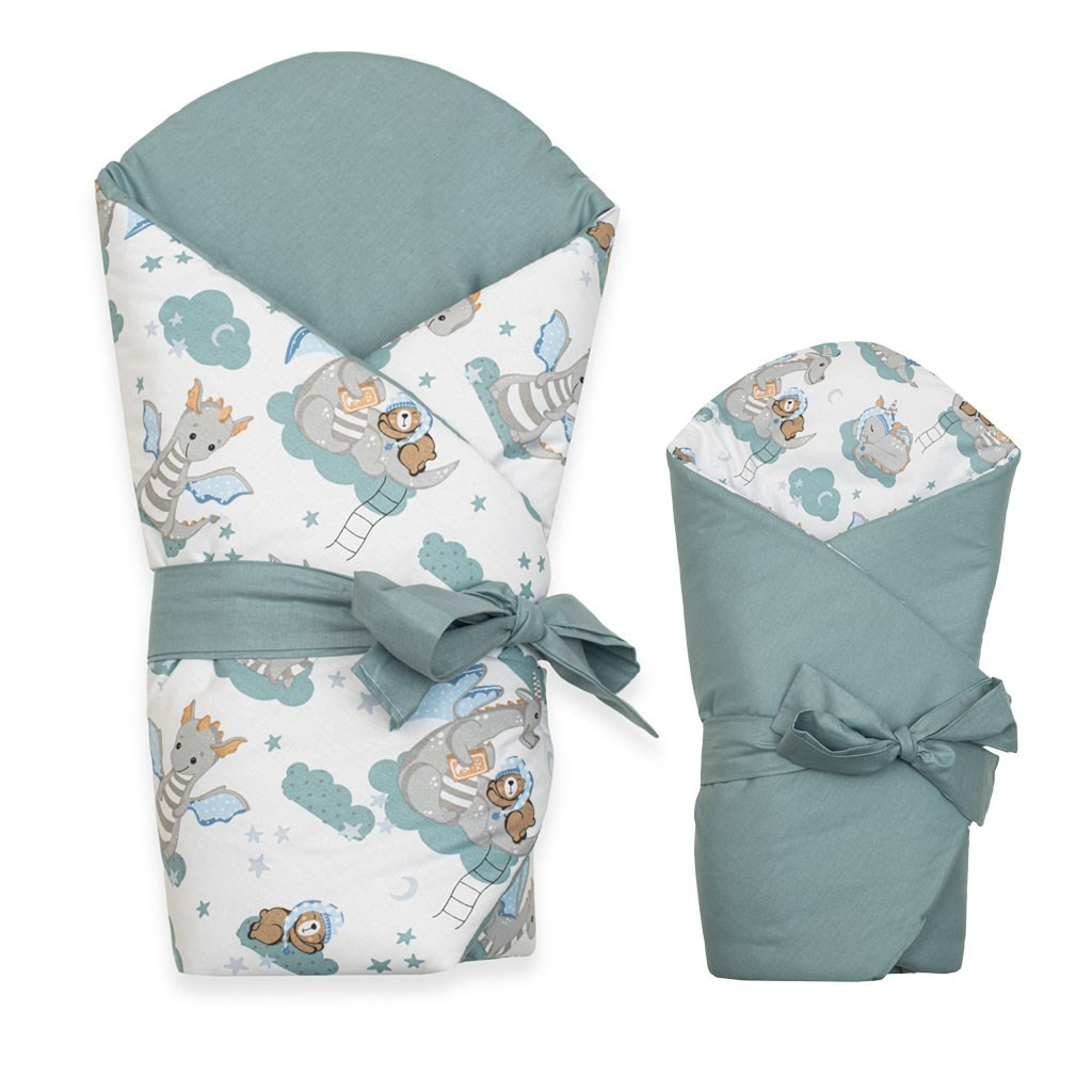 Aranyos baba kétoldalas pólyakendő New Baby Sárkány. Gyönyörű gyermekmotívum aranyos kis, gyönyörködtetni fogja a gyermekszemeket. Puha minőségi anyagból készült, ami kellemes melegséget biztosít a baba számára. A pólyakendő tépőzáras. Mérete cca 80x80 cm. Összetétel: huzat 100% pamut, töltőanyag 100% poliészter.