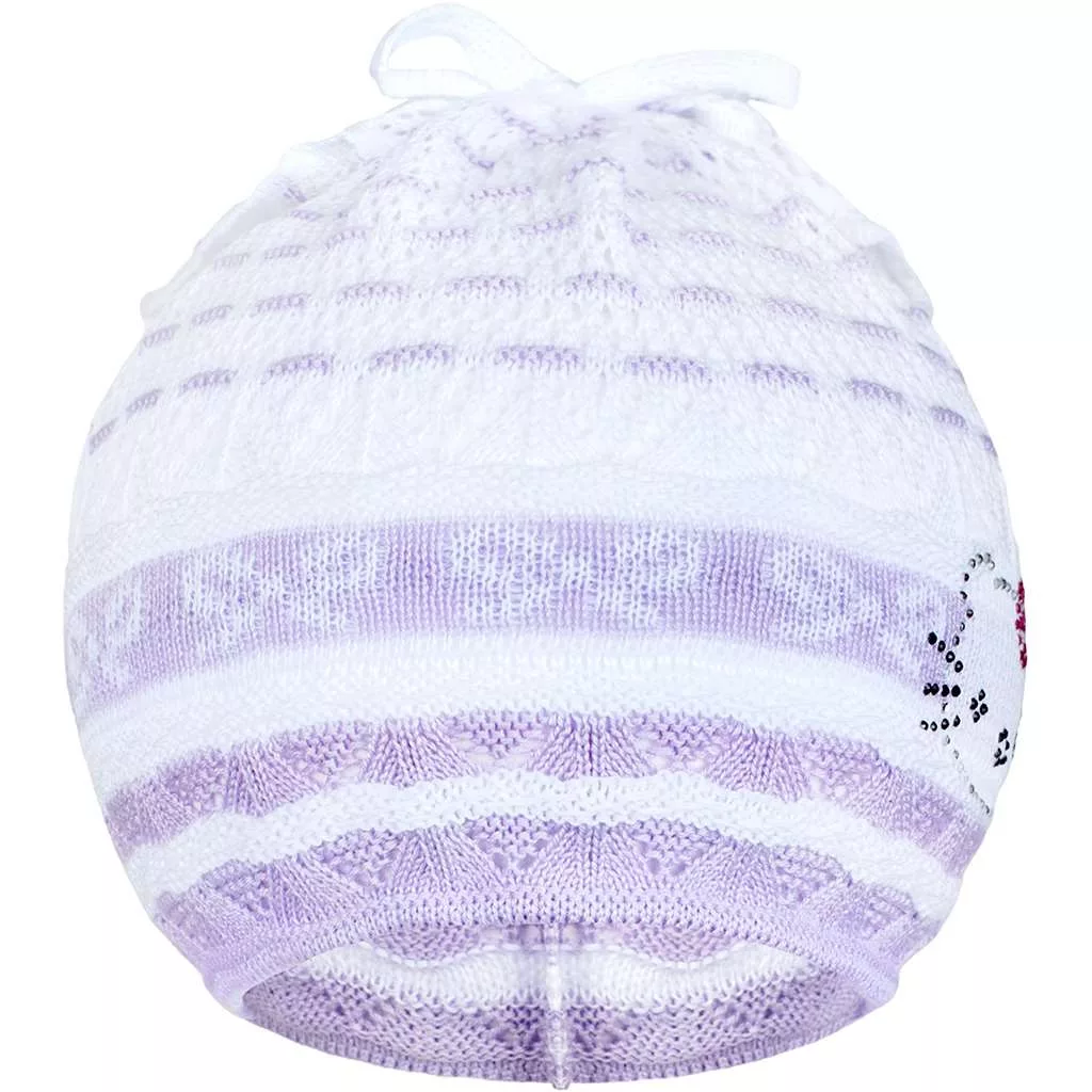Szép, kényelmes, divatos tavaszi kötött sapka New Baby. Csodálatos motívummal díszitve. Légáteresztő anyagból készült. A sapka puha és rugalmas. Tavaszi és őszi napokra alkalmaz. Anyaga: 100% pamut. Sapka átmérője kb 40-50 cm.