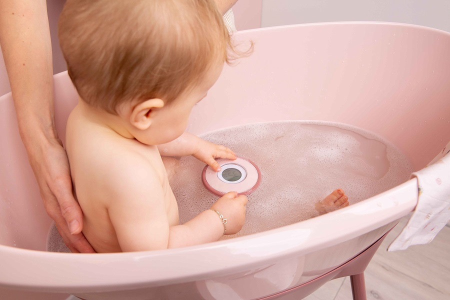 A holland LUMA Babycare által kínált digitális vízhőmérő mindig megbízható és biztonságos. Fontos kiegészítő a fürdetéshez, most a Blossom Pink kollekció divato árnyalatában.