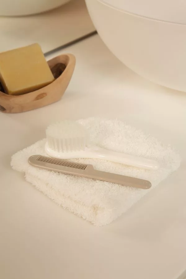 Fésű és hajkefe ajándék szett a LUMA Babycare kínálatában, újszülöttek számára.