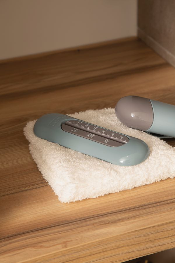 A holland LUMA Babycare által kínált vízhőmérő mindig megbízható és biztonságos. Fontos kiegészítő a fürdetéshez. Most az Ice Blue kollekció divatos árnyalatában.