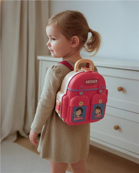 A hátizsákban található gyermekszépségszalonban szépségápolási termékek makettjei, tükör és még sok minden más található. Ez a hátizsák biztosan minden kis hercegnőnek örömet okoz.