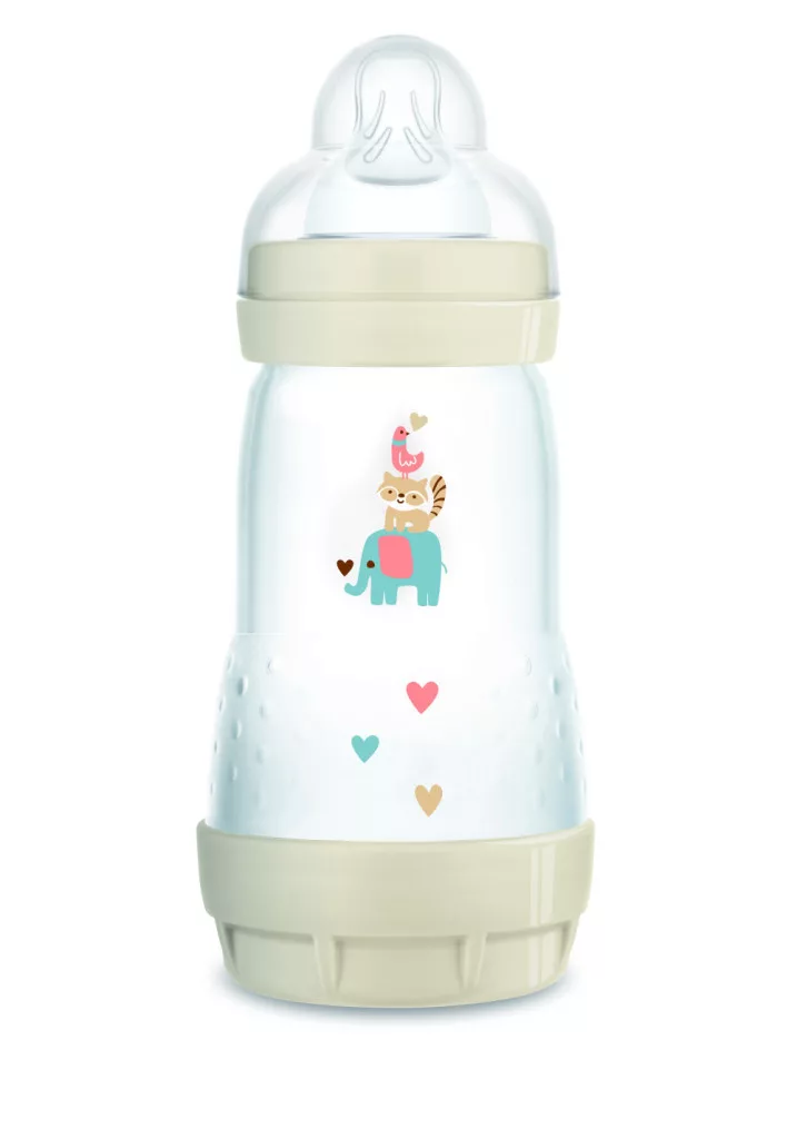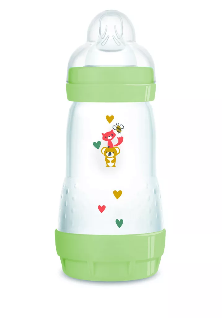 A MAM Anti-Coli cumisüveg puha, lapos etetőcumija olyan érzést kelt a kisbabádban, mint szoptatás közben, így ez a cumisüveg teljesen ideális a szoptatással való kombináláshoz. Ráadásul MAM szabadalmaztatott, szelepes aljnak köszönhetően a tej megszakítás nélkül tud folyni a cumisüvegből. Az üveg alján lévő szellőzőlyukaknak köszönhetően pedig egyáltalán nem képződik sem buborék, sem pedig hab, mellyel elkerülhető a kólikás hasfájás. A cumisüveg könnyen tölthető és tisztítható, sőt egyedülálló önsterilizáló funkcióval is rendelkezik, mellyel egyszerűen és gyorsan kifertőtlenítheted.