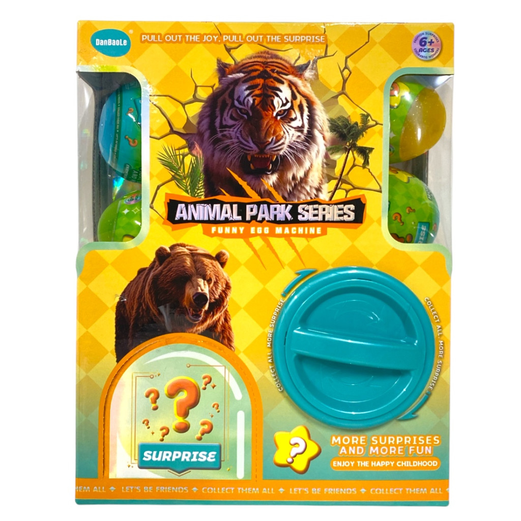 Meglepetés doboz, tekerõs, 5 db vadállatos golyóval, 18x22+ cm dob.