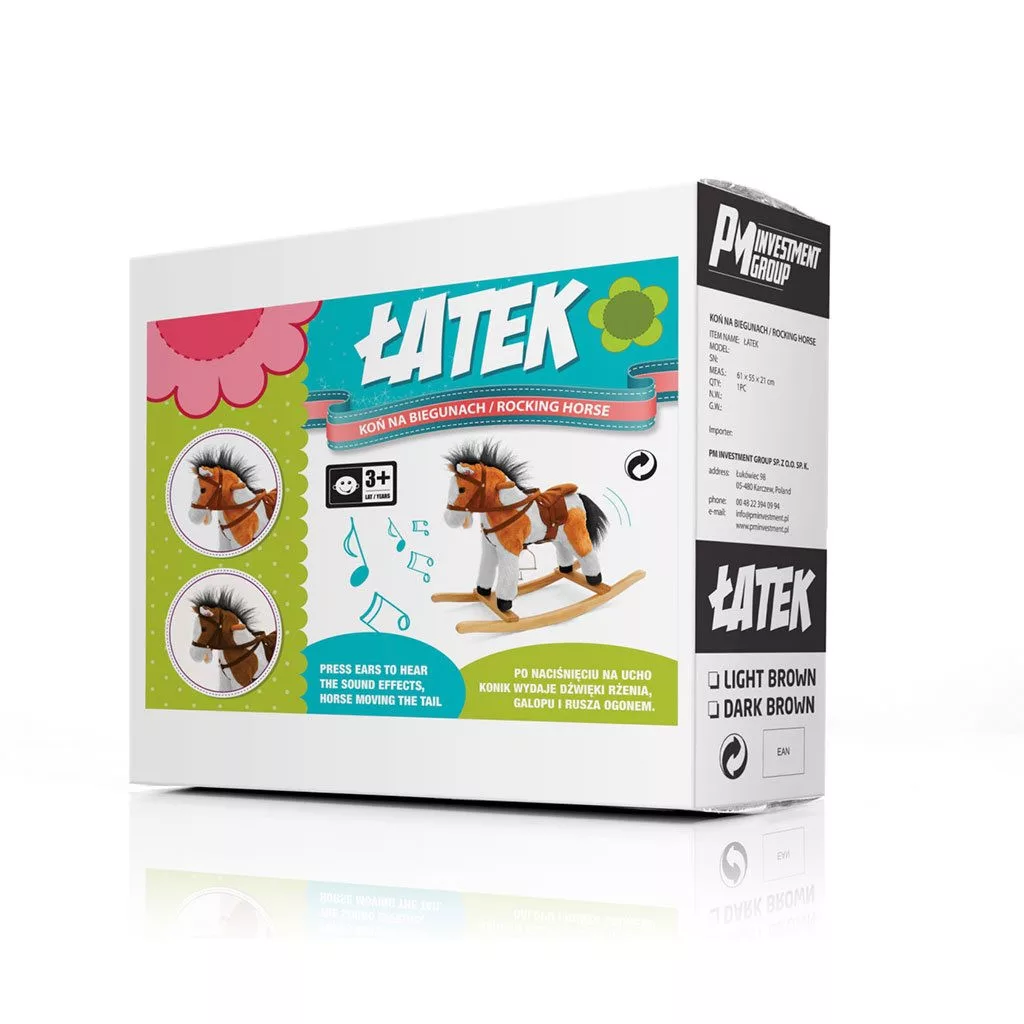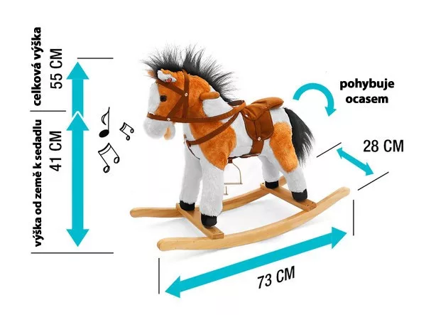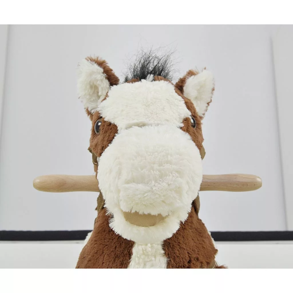Milly Mally hintaló sok újdonsággal. A lovacska mozgatja a farkát, pofiját és nyerítő hangot ad ki. Kellemes plüss anyagból készült. Nyereg, kengyel, kantár és fa fogantyú tartozik hozzá. A hintázó rám leszerelhető. Az elem nem a játék része. Terhelhetősége 30 kg. Mérete a hintázó rám nélkül 60x28x55 cm.