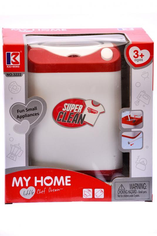 Mosógép, elemes(2xAA), felültöltõs, leengedi a vizet, piros-fehér, 19x21 cm dobozban