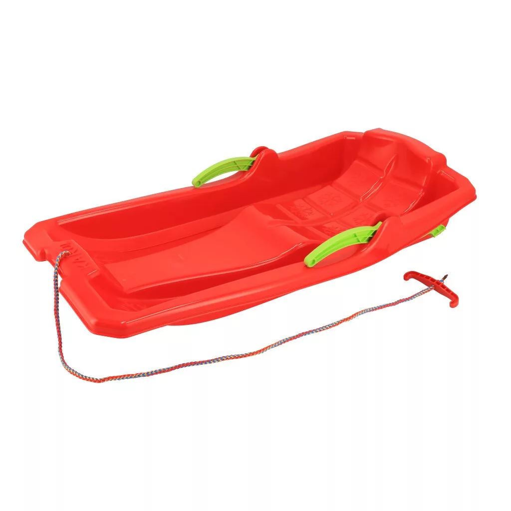Műanyag lapos szánkó fékekkel Baby Mix KAROL. A fékeknek köszönhetően ez a modell lehetővé teszi a menetirány irányítását és a biztonságos megállást. Kiváló minőségű műanyagból készültek, -20 ° C-ig fagyállóak. Fel vannak szerelve fogantyúval.