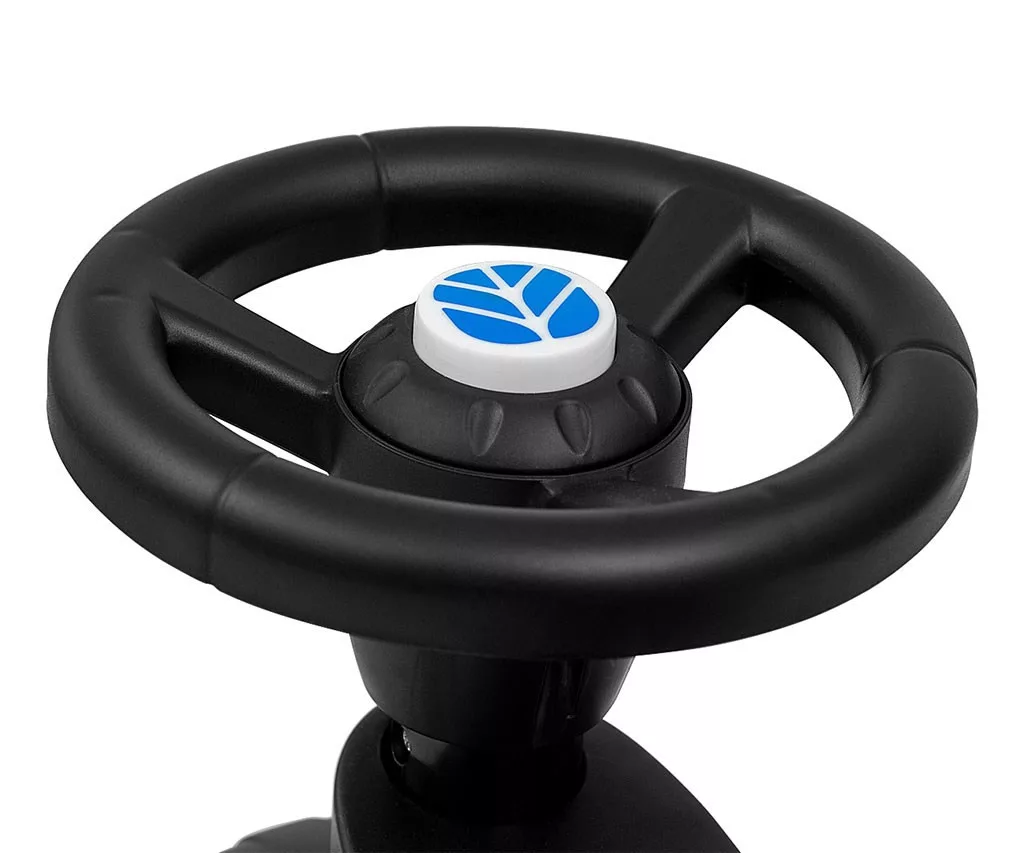 A traktor forgatható első kerekekkel rendelkezik. Könnyen összeszerelhető, stabil és biztonságos. Hátradőlés elleni védelemmel van ellátva. Kényelmes üléssel és háttámlával is rendelkezik.