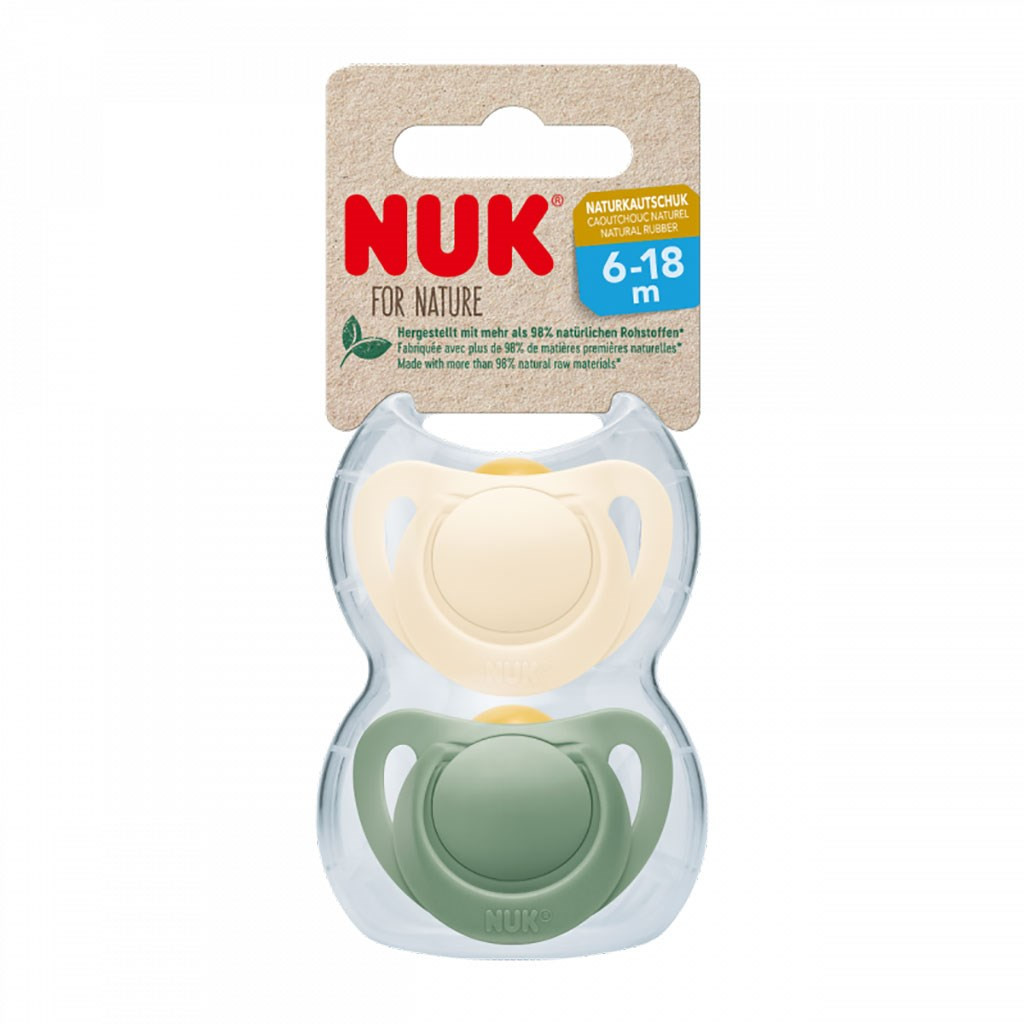 Természetes gumiból készült NUK For Nature babacumi, 6-18 h, 2 db-os kiszerelés.Természetes gumiból készült NUK cumik, származási hely: Németország. Természetesen BPA-mentesek, és megfelelnek az EN1400 európai biztonsági szabványnak. A NUK For Nature termékek összetevői legalább 98%-ban természetes eredetűek. A kemény részeket fenntartható műanyagokból gyártjuk. A természetes eredetet független tanúsítvány igazolja. A puha szopóka tiszta természetes gumiból készült. A 100%-ban növényi eredetű megújuló