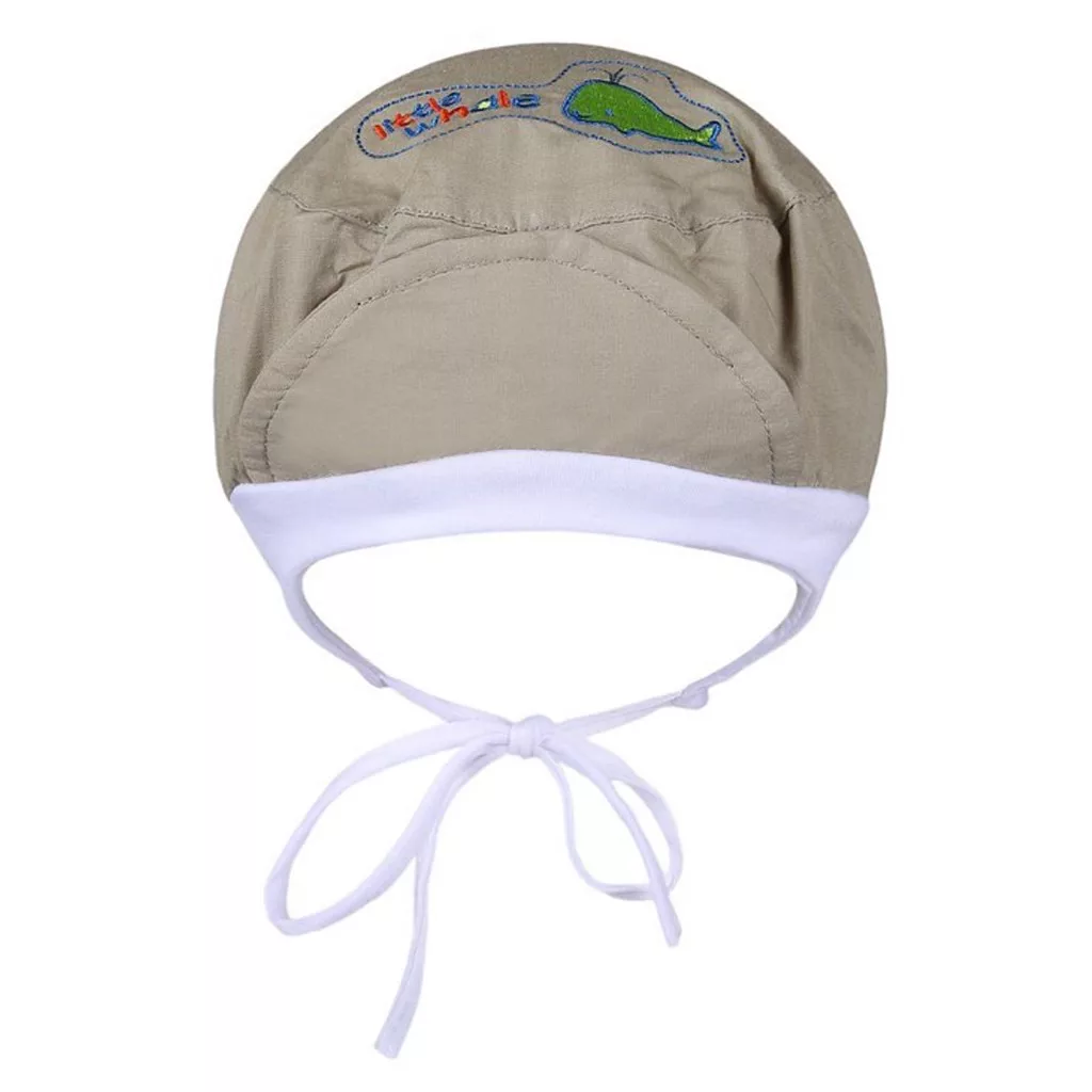 Gyerek tavaszi-nyári pamut sapka New Baby Little Whale. A sapka aranyos bálna képpel és felírattal little whale díszítve. A sapka légáteresztő anyagból készült, alkalmas tavaszi és nyári napokra. Alakjának köszönhetően nagyon jól tart a baba fején. Anyaga: 100% pamut.
