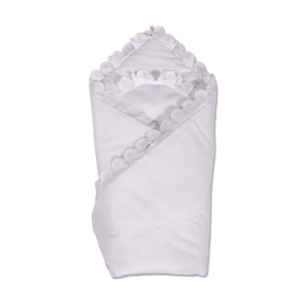 Pamut tépőzáras pólya csipkével díszítve. Mérete: 80x80 cm. Anyaga: 100% pamut.A pamut nem idéz elő horzsolást és irritációt, mivel nem tartalmaz formaldehidet és egyéb anyagokat, amelyek károsak lehetnek a csecsemő számára. Nem fakul a színe. Nem tartalmaz gombokat illetve egyéb műanyag és acél részeket, amelyek veszélyesek lehetnek a gyermek számára. Anyaga, amely töltetként használt, 100%-osan antiallergén, így az anyagból nem terjed semmilyen mikroorganizmus és penész.