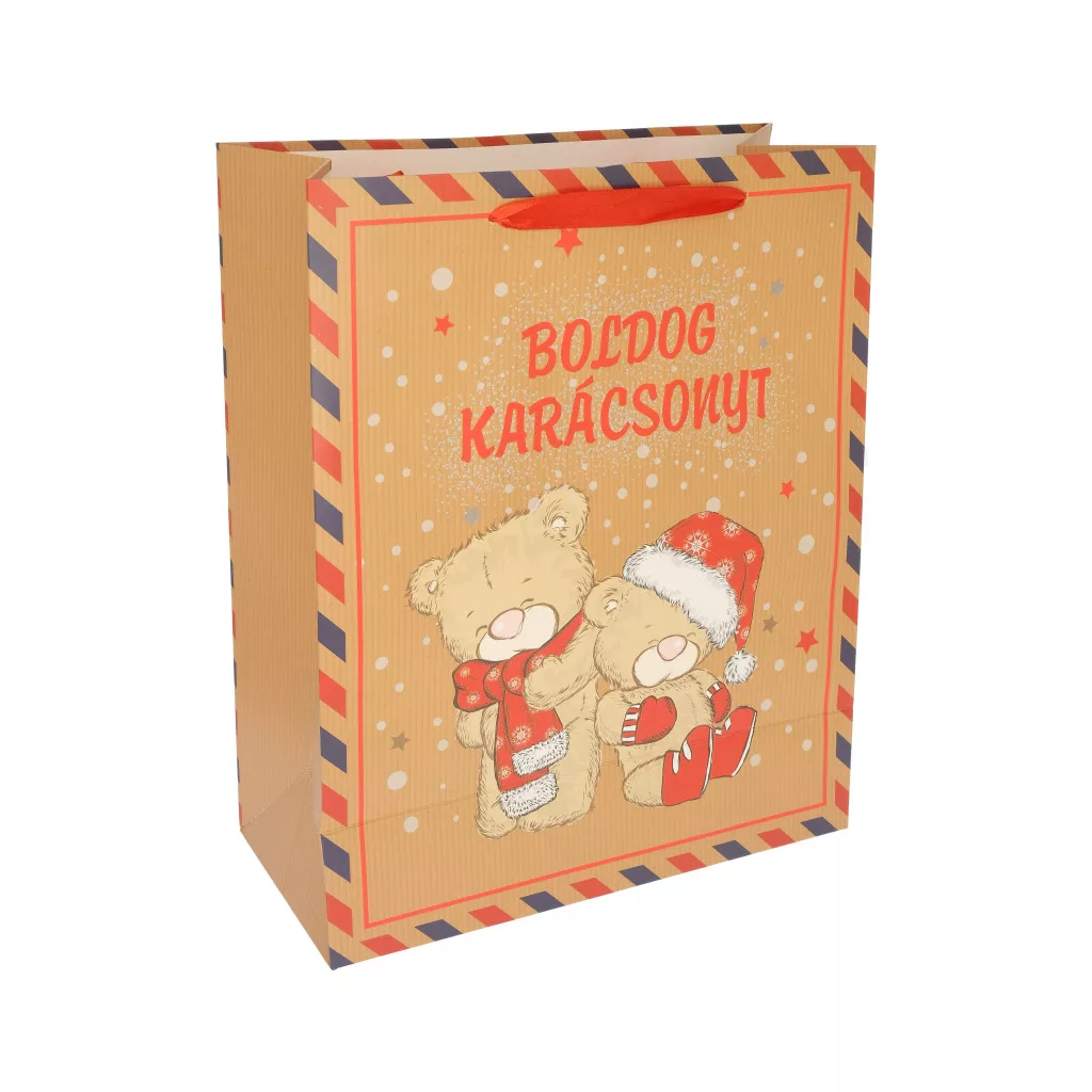 Papírtasak, Boldog Karácsonyt felirattal, piros, XM, 26x32x12 cm