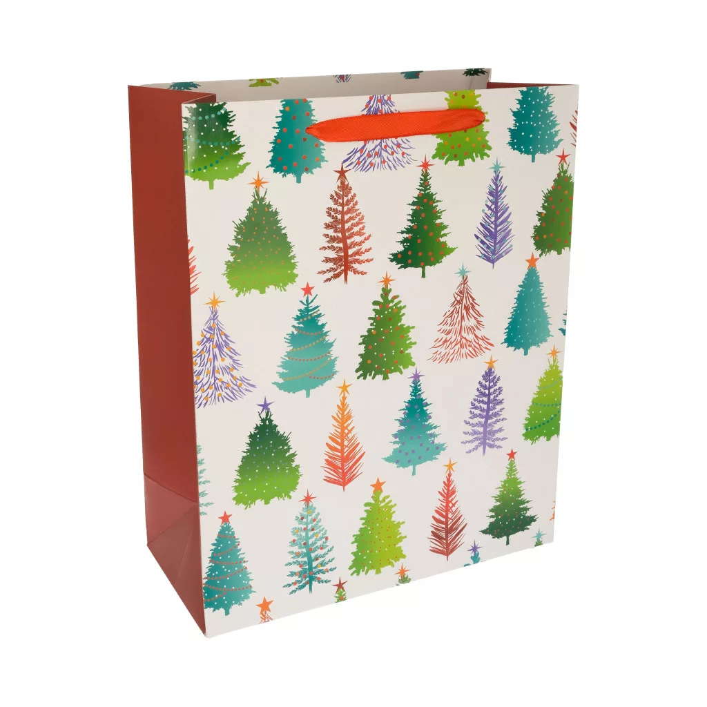 Papírtasak, fenyõfákkal, színes, XM, 18x23x10 cm
