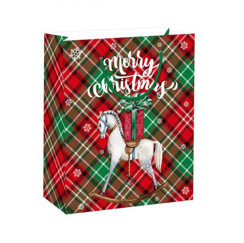 Papírtasak, hintalóval, glitteres, többszínû, XM, 18x23x10 cm