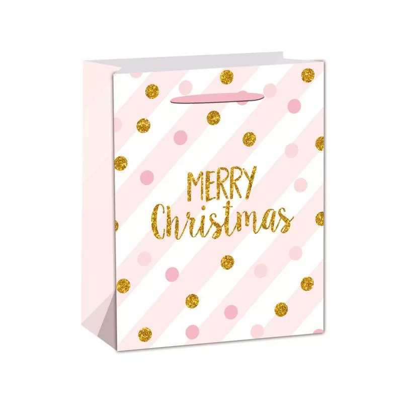 Papírtasak, pöttyös, glitteres, Merry Christmas, XM, 31x42x12 cm