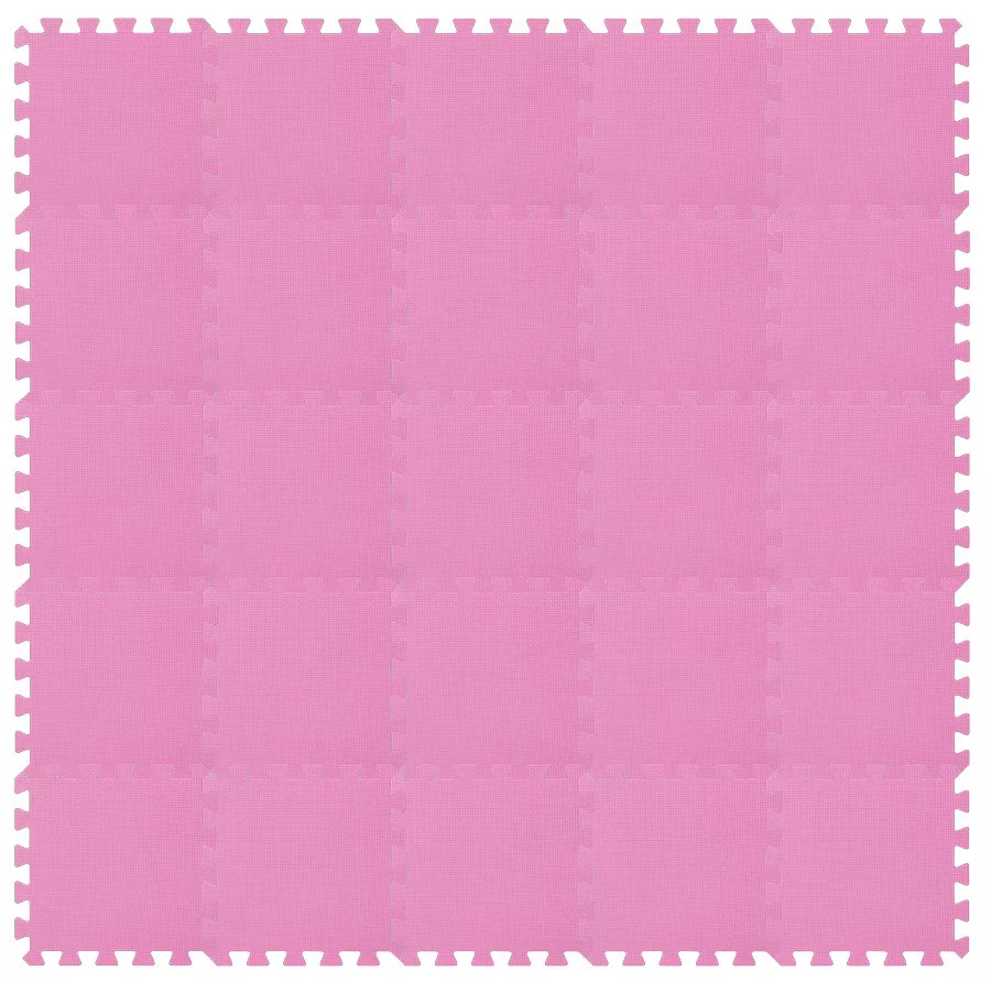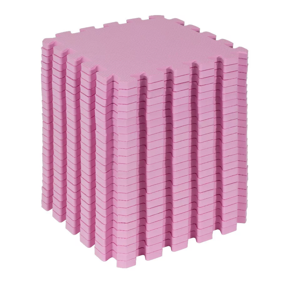 25 db vastag, 1,4 cm magas, kirakós puzzle habszivacs szett rózsaszín színben, 150x150cm-es játszószőnyeget alkotva, igény szerint más méretet is összeállíthat.