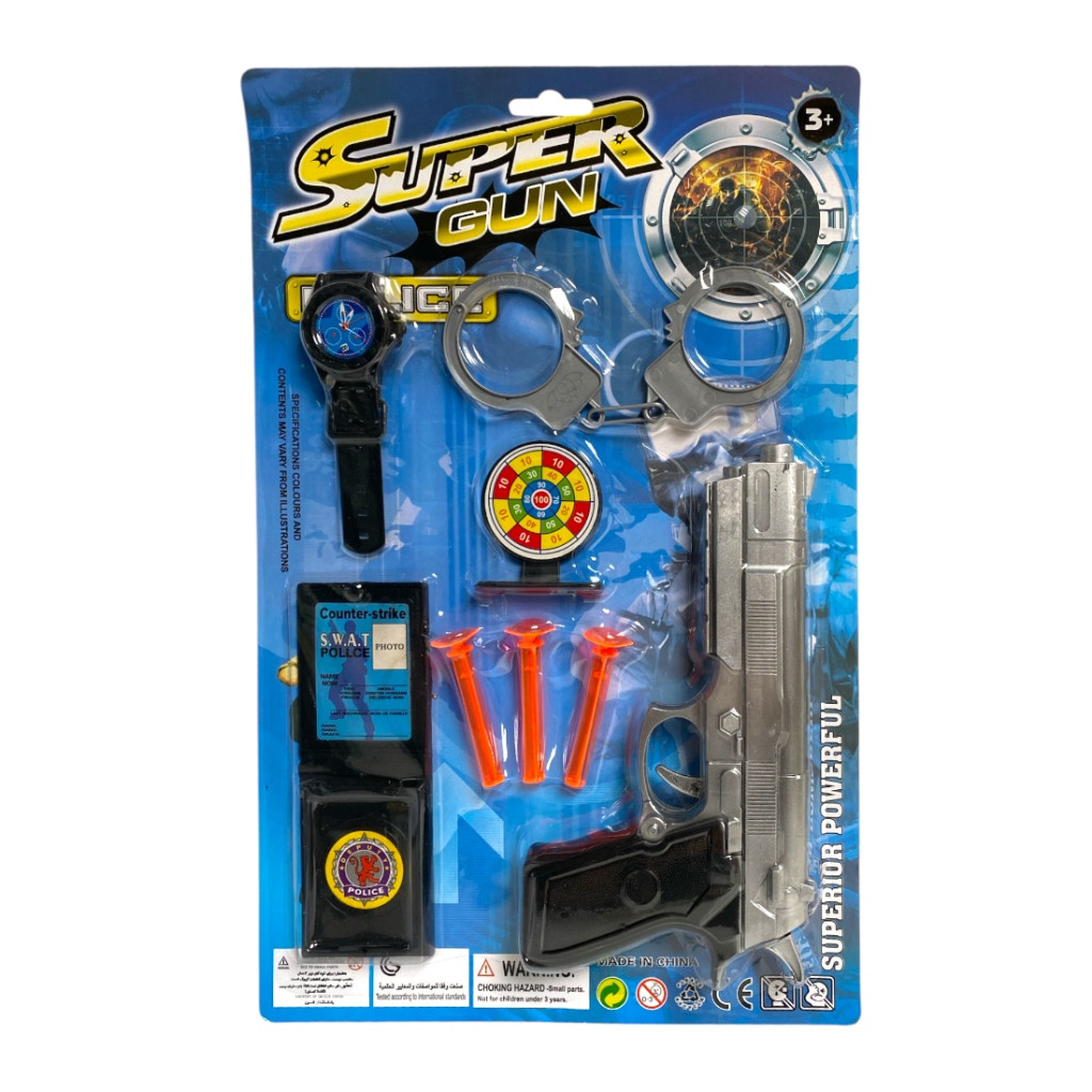 Rendõr klt., pisztoly, tap.kor., bilincs, kieg., 22x38 cm lapon