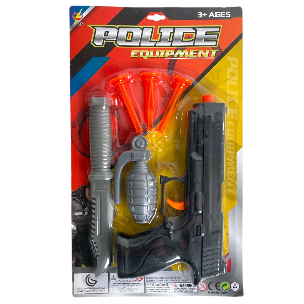 Rendõr klt., pisztoly + tap.kor. lövedék, kieg., 19x32 cm lapon