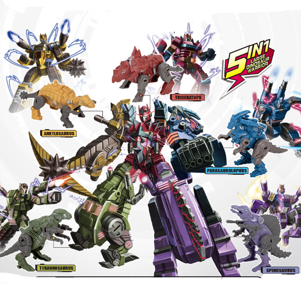 Robottá alakítható dínó, 5 féle, 15x27 cm lapon