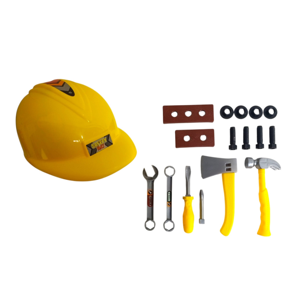Szerszám klt., + munkás sisak, 23x18 cm hálós